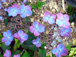 Ce sont des hydrangea de petite taille (50cm à 1m50), originaires des montagnes du Japon et du sud de la Corée. D'une rusticité à toute épreuve, leur floraison n'est pas sensible au gel tardif, contrairement aux H. macrophylla. Leurs inflorescences le plus souvent plates, en bonnet de dentelle, plus rarement rondes, sont en revanche soumises au pH du sol. Les roses deviennent bleues en sol acide, ce qui donne pour la même plante une palette de couleurs étonnante! Ils aiment la mi ombre, mais beaucoup supportent le soleil du matin ou du soir, à condition d'avoir les pieds au frais. Leur feuillage prend alors de belles couleurs d'automne. En revanche, ils détestent l'humidité stagnante l'hiver! Il faut donc leur trouver un emplacement en sol frais mais bien drainé. S'ils fleurissent tous en juin juillet, beaucoup remontent en septembre pour peu que l'été ait été arrosé. Leurs fleurs apparaissant sur le bois de l'année précédente, attention à ne pas les tailler sous peine de se priver de floraison! Il suffit, lorsque l'arbuste vieillit, de couper à la base les tiges les plus anciennes.