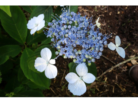 Hydrangea originaire de Corée, très ramifié, aux inflorescences plates blanches à fleurs fertiles mauves ou bleues. Le feuillage très gaufré prend de belles couleurs au soleil.