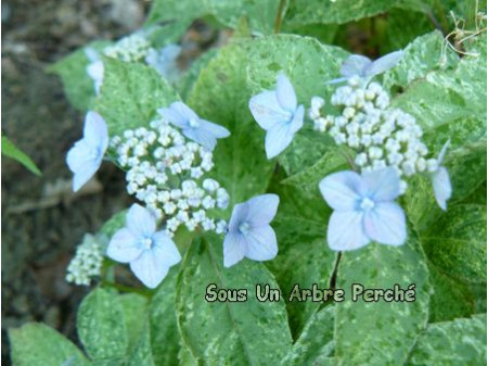 Petit arbuste très florifère, couvert de petites inflorescences plates bleues ou roses, dont le feuillage, moucheté de blanc, illumine les coins d'ombre. A protéger du soleil.